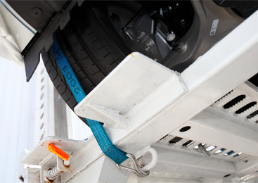 All the vehicles are tightly fixed to the transporter floor by tie-wrap belts made of special fabric.