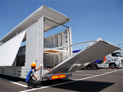 One of the largest transporters in Japan accommodates four large-sized passenger cars. Another advantage is a higher level of safety and security of the vehicles carried thanks to the concealed loading area.