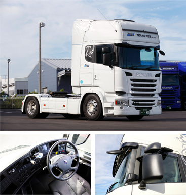 TransWeb is exploring a new horizon of transportation by developing a new vehicle concept while aiming at an upgrade in logistics quality including reduced cost and time required. The company dispatches deligates to Europe and America at least once in a year, seeking for epoch-making ideas and technologies. In so doing, we attempt to devise a breakthrough, spearheading a new trend that pushes out the current boundary of Japanese logistic vehicle concept. TransWeb is enthusiastic to selectively apply unique ideas made available in the heavy-duty commercial vehicle exhibitions to our and our customer’s fleets.