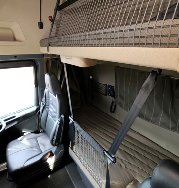 Behind the seats is a space for relaxation with bunk beds. One of the essential equipment for a long-distance truck.
